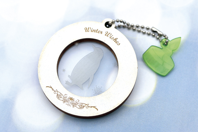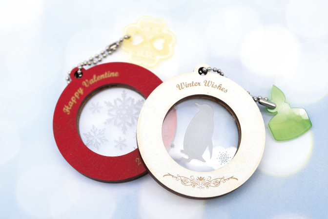 レーザーカッターで切り出した木枠と、季節でデザインが変わるアクリルプレートを組み合わせてつくる体験。