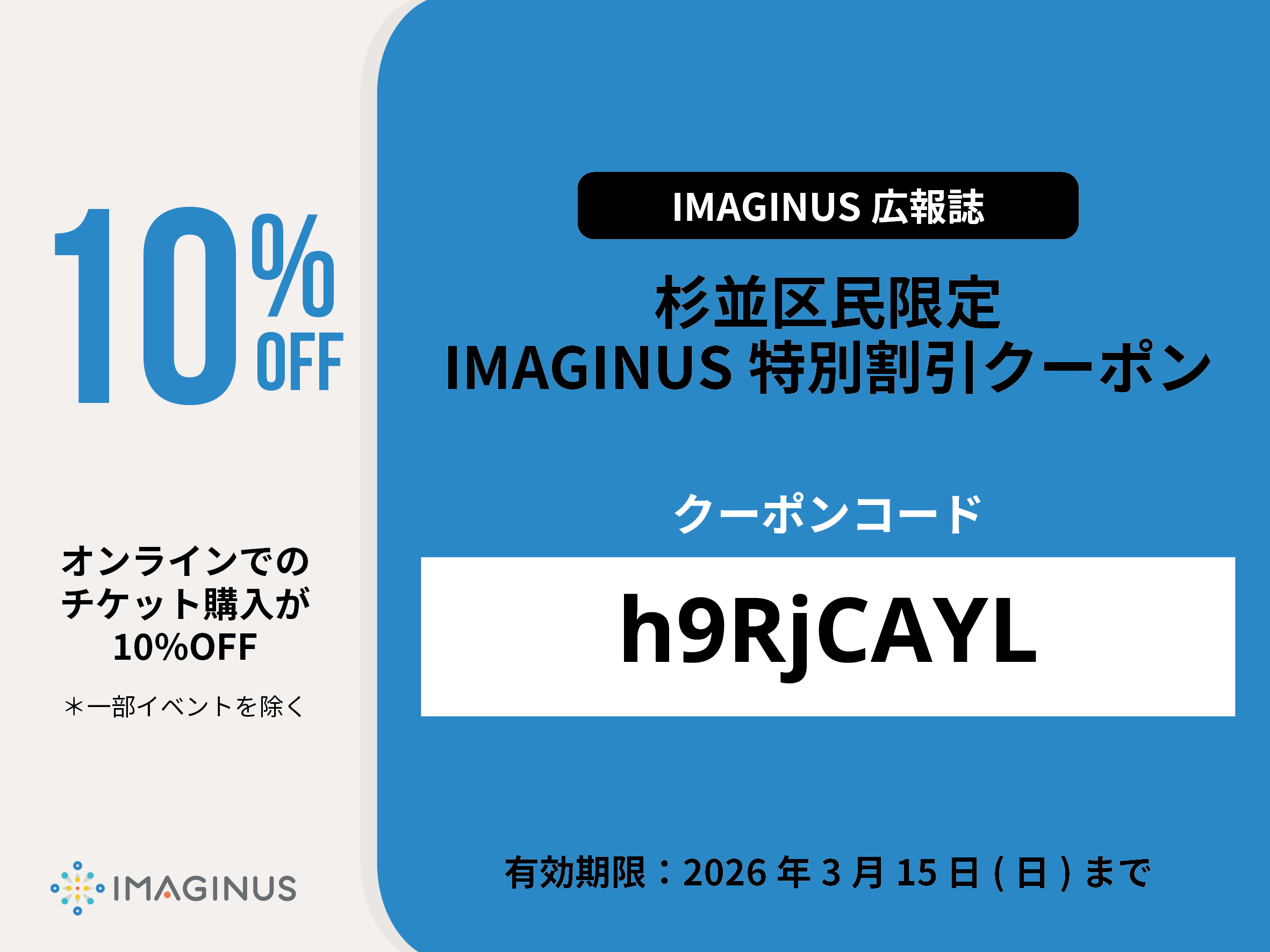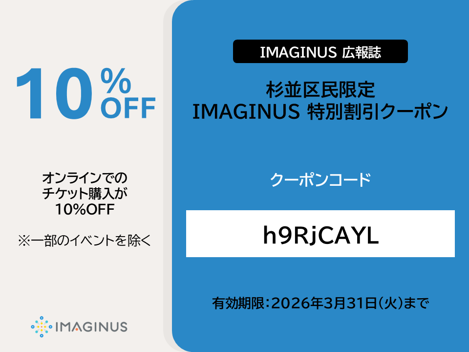 杉並区民&オンライン購入限定「IMAGINUS特別割引クーポンコード」のご案内