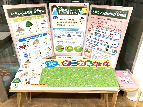 遊びながら身の回りのアレコレが化学物質であることや、化学物質が何の役に立ち、何に気を付けなければいけないのかを学べます。